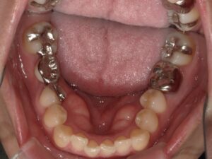 全体に古い銀歯が入っていて、一部は二次むし歯を発症していました。