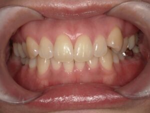 矯正治療前に不適合修復物はすべて仮歯に置き換え、矯正治療後にオールセラミック修復を行ないます。